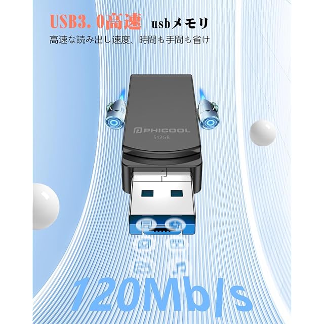 商品名:512GB USBメモリ [アプリ不要 アルバム直接保存!]4in1 Phone/Android/PC対応 phone から 直接 usb に 写真 を 移す/バックアップ可能 スマホデータ保存 外付けメモリ Type-C搭載 大容量外付けストレージ フラッシュメモリスマホ容量不足解消 高速 データバックアップ転送対応 !