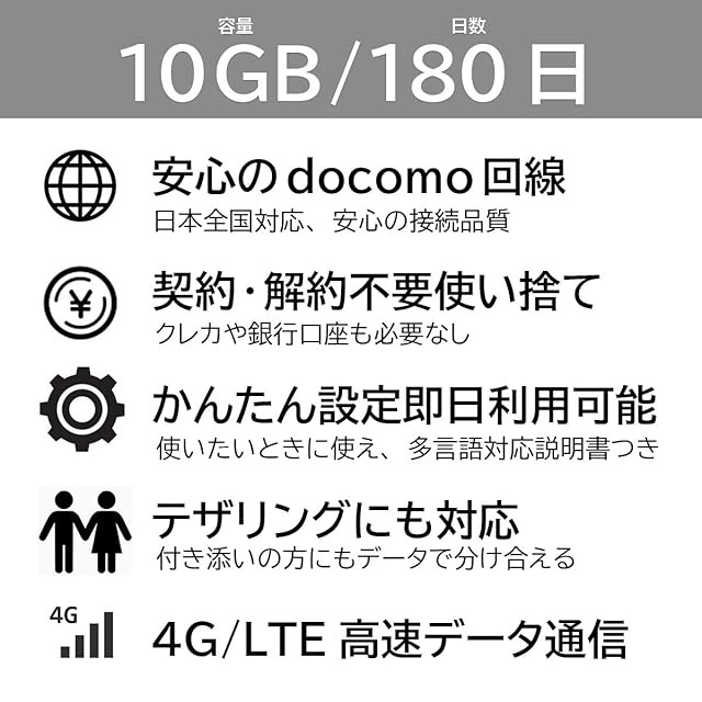 Docomo プリペイドSIM 日本 10GB 180日 sim プリペイド データ専用 4G LTE 物理SIM/prepaid sim 10gb 180days japan travel (10GB/180日) | TREND DESIGN 家電専門店