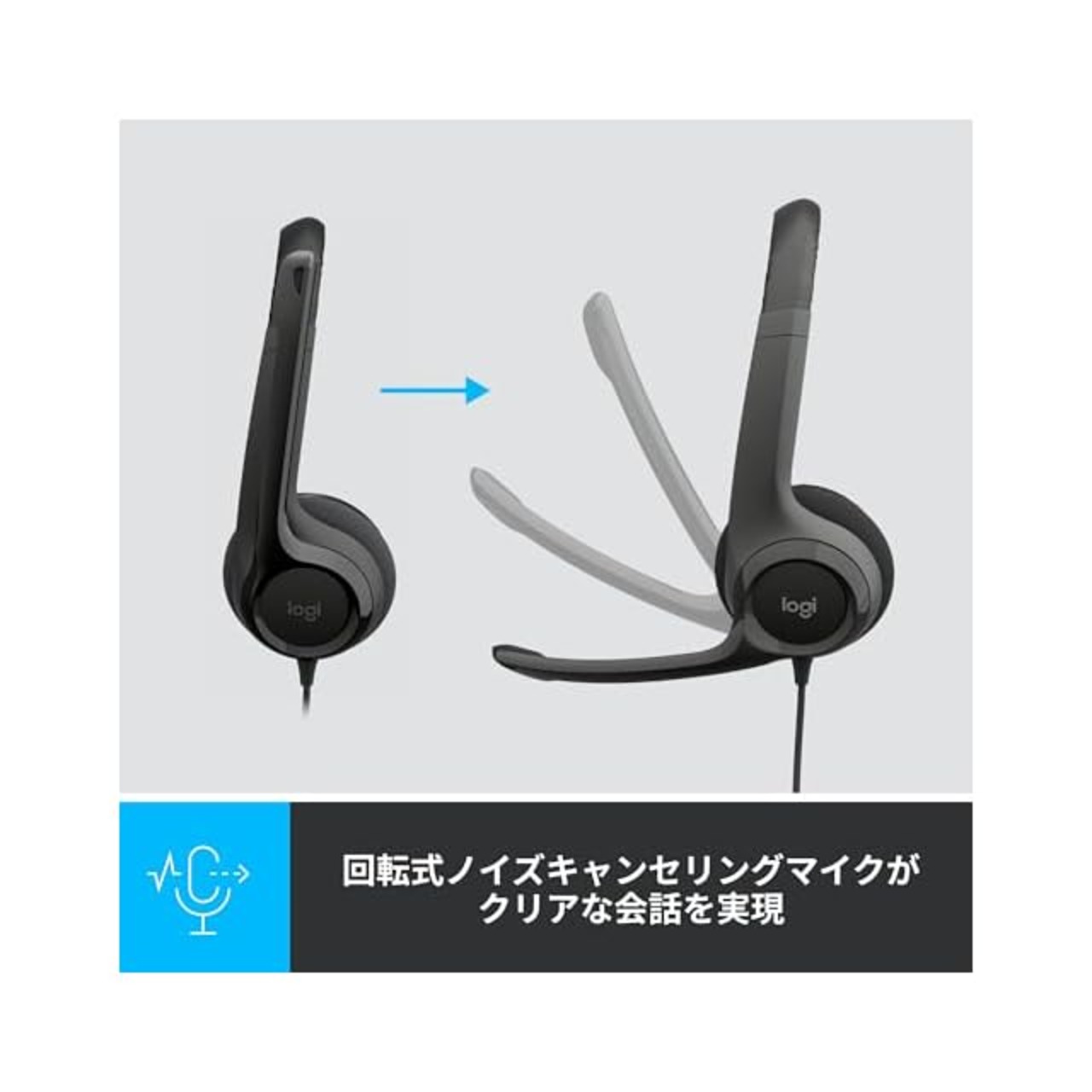 【ノイズキャンセリングマイク】ノイズキャンセリング技術によって背景の雑音を最小限に抑え、クリアな会話を実現します。左側にあるマイクは、音声を適切にキャプチャするように調節可能。移動可能なブームは、未使用時は邪魔にならない位置にしまい込むことが可能。