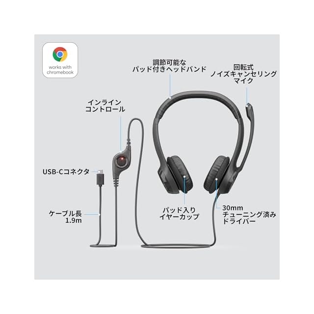 商品名:ロジクール ヘッドセット USB Type-C 接続 ノイズキャンセリング マイク付き H390RC ステレオ コントロール 軽量 マイク ヘッドホン ヘッドフォン ブラック windows mac Chrome USB-C H390R テレワーク リモートワーク Web会議 国内正規品 2年間メーカー