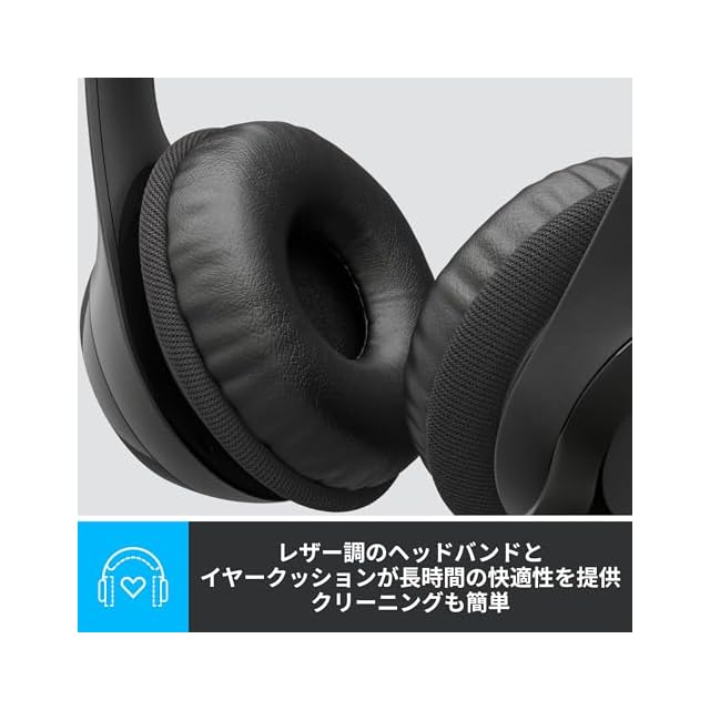 【パッド付きヘッドバンドとイヤーカップ】調節式ヘッドバンドには、スイベルマウント式レザー調イヤークッションが備わり、長時間着用しても快適です。クリーニングなどの手入れも簡単にできます。
