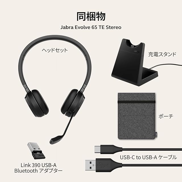 Jabra Evolve 65 TE ヘッドセット ワイヤレス 両耳 マイク付き スタンド付き Link 390a UC ステレオ 2台同時接続 Bluetooth5.2 ノイズキャンセリング 最長16時間通話 1日中快適なレザークッション Teams/Zoom利用可能 会議 | TREND DESIGN 家電専門店