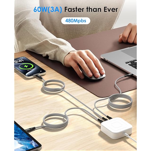 最大PD60W/3A急速充電、480Mbpsデータ転送:USBPD対応に対応したCタイプケーブルで、PDに対応したスマホやタブレットなら素早く充電することができます。480Mbpsの高速データ転送は音楽、映画、写真、HD動画をわずか40秒以内に転送できます。