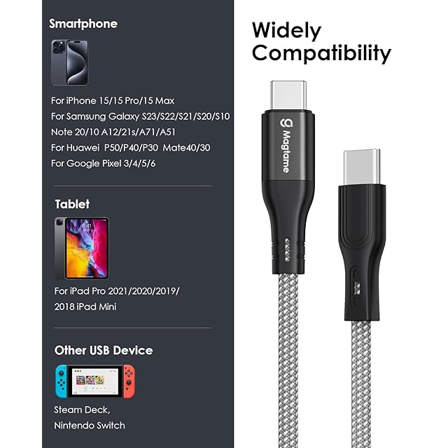 Magtame usb cケーブル 急速充電 磁力吸着絡まり防止 タイプc_ケーブル 60W/PD対応 形状記憶 usbc&usbcケ_ーブル金属製コネクタtype-cケー_ブル二重ナイロン iPhone15/MacBook_Pro/Air/iPad/Samsung_Galaxy等対応 (1.5M-シルバー) | TREND DESIGN 家電専門店