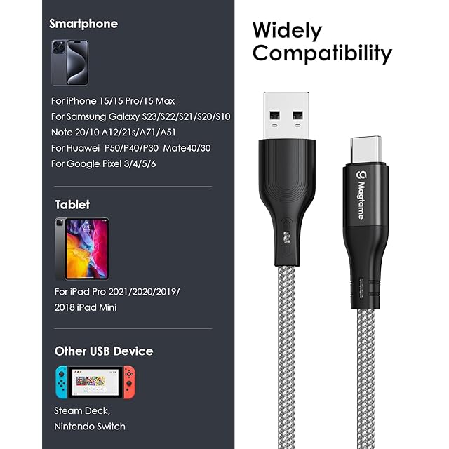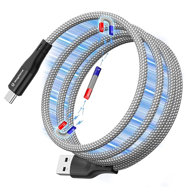 商品名:Magtame USB-Type Cケーブル 急速充電 QC3.0対応 USB-Cケーブル 磁力吸着絡まり防止 usbケーブルタイプc 金属製コネクタ 二重ナイロン 形状記憶 Xperia/Samsung/Switch Android usb a to c機器等対応 (1.5M-シルバー)