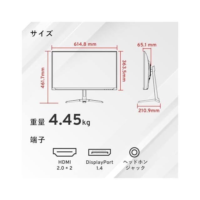 【端子】 HDMI 2.0 ×2 / DisplayPort 1.4 ×1 / ヘッドホンジャック