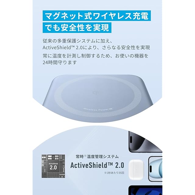 Wireless PowerI搭載:Anker独自のWireless PowerIを搭載し、充電時間の短縮と放熱性の向上を実現。