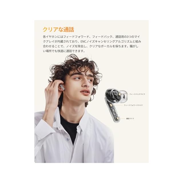 【クリアな通話】各イヤホンにはフィードフォワード、フィードバック、通話用の3つのマイクアレイが内蔵されており、ENCノイズキャンセリングアルゴリズムと組み合わせることで、ノイズを除去し、クリアなボーカルを保ちます。騒がしい場所でも快適に通話できます。わずか80msの低遅延と安定した接続により、MeloBuds Proはオーディオとビデオの同期をし、本格的な音質で、新次元の音楽、映像、ゲーム体験をお届けいたします。