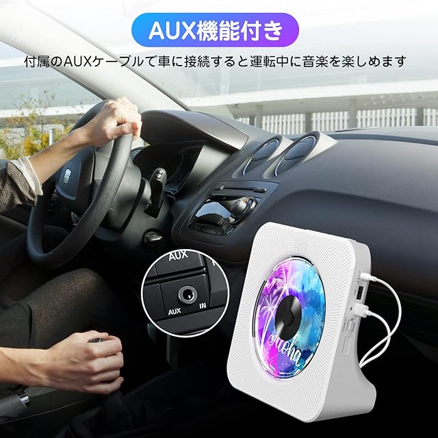「2023年革新版の多機能CDプレーヤー」本卓上置き式CDプレーヤーはBluetoothを搭載しており、スマホなど他のbluetoothデバイスの音楽が再生できます。CD放送のほかに、本製品はAUX機能も搭載しており、付属のAUXケーブルでCDラジオと車など外部のオーディオデバイスに接続して音楽が再生できます。モバイルバッテリで給電可能とFMラジオ機能(周波数:76KHz-90MHz)付きで、緊急時に実用的な防災ラジオとしても使えます。また、本体またはリモコンの“MODE”でBluetoothモード/CDモード/FMモード/USBモード/AUXモードなど5つのモードを手軽に選択できます。ご注意!ご注意!ご注意!1、本製品は、対応するUSBメモリーカードをCDモードで挿入すると、自動的にUSBメモリーカードを読み込み、音楽を再生することができます。2、本製品はFAT16/FAT32のUSBメモリーカードに対応します。NTFSに対応しません。ご了承ください。