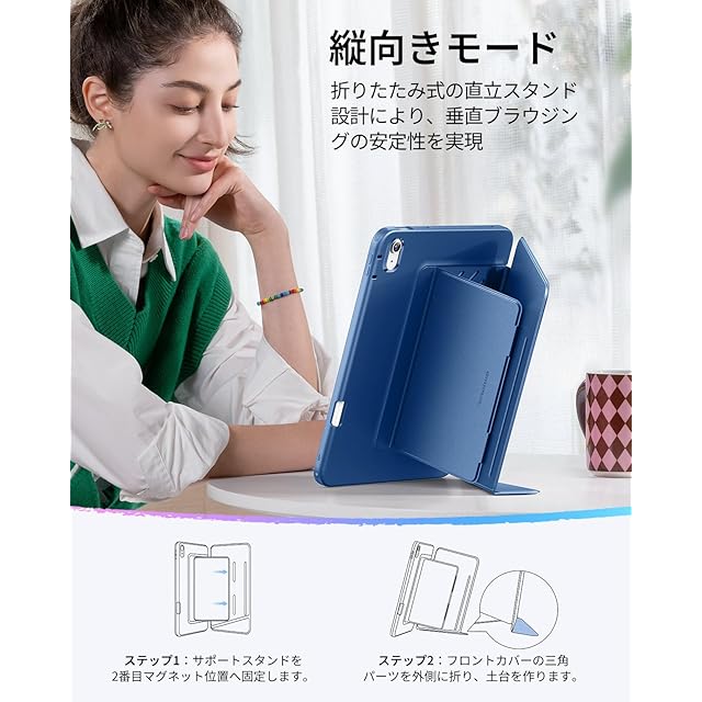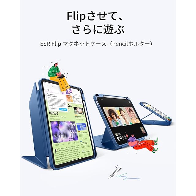 ESR iPad 11世代 ケース A16 iPad 第10世代 / 第11世代 専用カバー (2022/2025モデル) ペン収納 耐衝撃 縦横スタンド 自動ウェイク/スリープ Pencil/USB-C対応 マルチアングルケース 11インチ/10.9インチ Flipシリーズ ネイビーブルー | TREND DESIGN 家電専門店