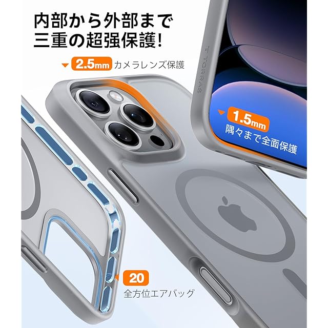 【信頼のTORRAS・進化を続ける】TORRAS Guardian-Mag は、業界のリーダーとして、革新的な磁石技術と米軍規格の耐衝撃保護特許を組み合わせた磁吸ケースで、多くのお客様から信頼を得ています。16シリーズの進化に伴い、私たちも革新を重ね、さらに製品機能を強化している。Magsafe対応ケースを探しているなら、信頼のTORRASを選んでください。変わらない高級品質と、進化し続ける体験を届ける。「※ご注意:①リンゴのロゴはケースではなく、ケース越しにスマホ本体に表示されるものです。②新バージョンのストラップホールが付属し、ケースのスピーカーの横にある。③品質付き:万が一問題が発生した場合は、注文ページからお問い合わせいただければ、TORRASは一年以内に品質を受けられます。」