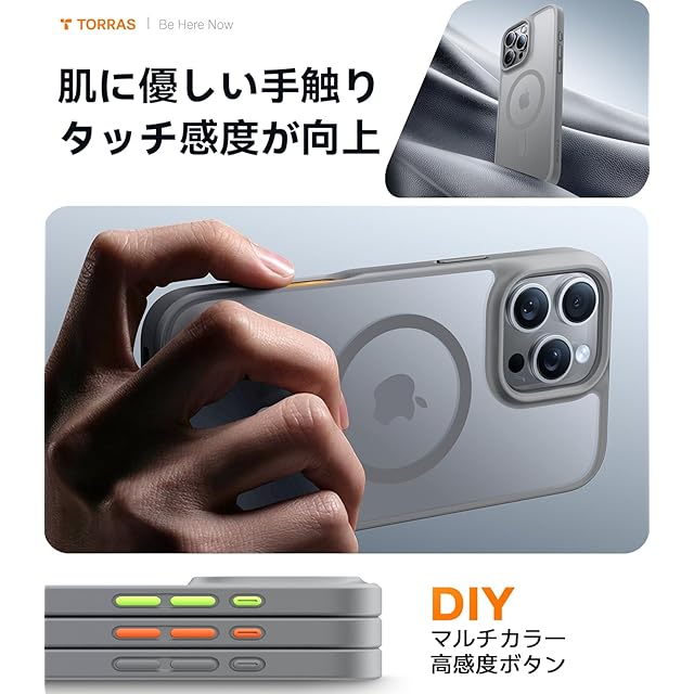 商品名:【米軍進化・Magsafe対応】TORRAS iPhone 16 Pro Max 用 ケース 半透明 マグネット搭載 耐衝撃 マット感 黄ばみなし ストラップホール付き ワイアレス充電対応 6.9インチ チタングレー