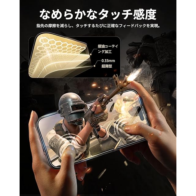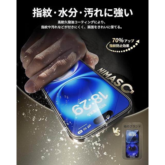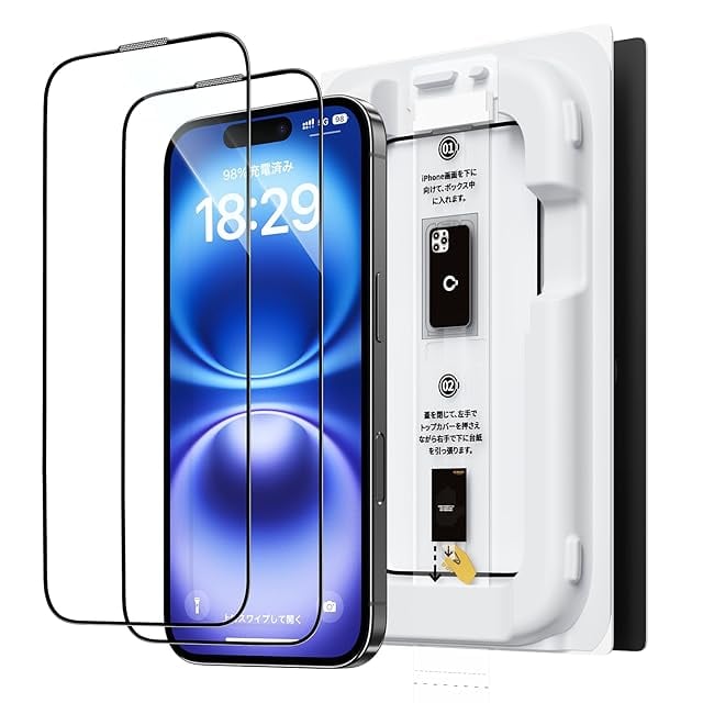 「99%の透明感・指紋防止」このいphone16用フィルムは99%という高い透過率を持つ極薄ガラス材料で、画面の精細さを保ちながら、滑るようなスムーズなタッチ操作を体感できます。また、撥水撥油のAF(Anti-Fingerprint)コーディング加工により、指紋がつきにくく、汚れや油分をはじき、着いても拭き取るだけで綺麗になります。