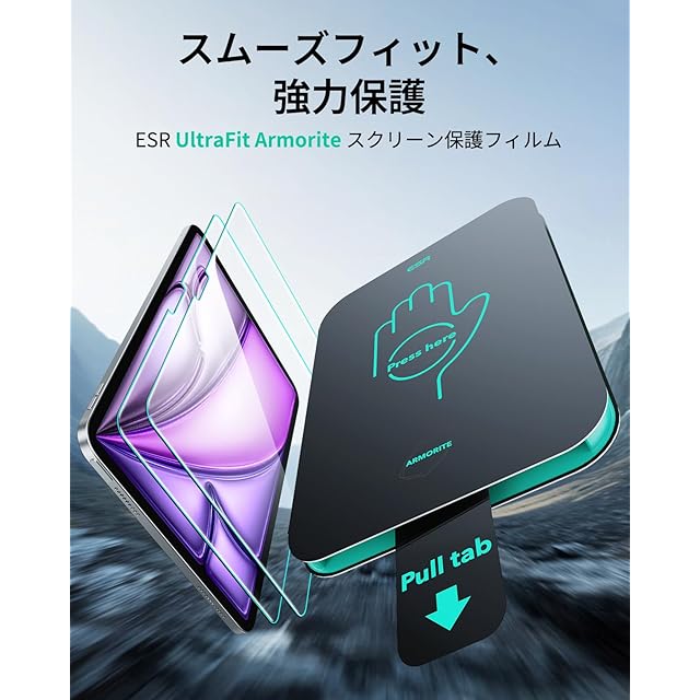 商品名:ESR 2枚入り iPad Air 13インチ フィルム M3/M2 (2025/2024 第7/6世代)専用 Armorite スクリーン保護 9H硬度 強化ガラスUltraFitトレイ付き 軍事規格の保護力 気泡ゼロ HD透明 自動除塵 耐スクラッチ性 Apple Pencil対応