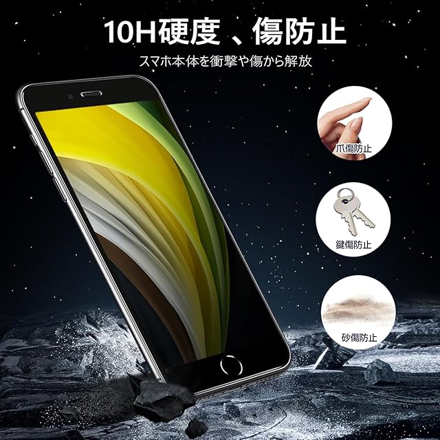 【10H硬度・高品質素材】 MINIKAのiPhone SE2 フィルム。10H硬度ガラスを採用し、ハードコーティング技術により外部からの衝撃を吸収し、画面へのダメージを可能な限り抑えます、スクラッチ防止。【製品の特徴】 全面保護/気泡なし/耐衝撃/剥がれない/綺麗/割れない。