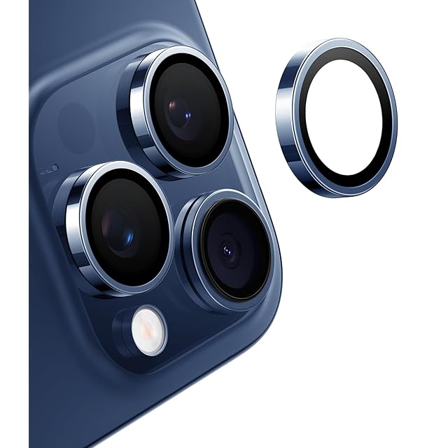 TORRAS iPhone 15 Pro 用 カメラフィルム iPhone 15 Pro Max 用 カメラフィルム 【宇宙航空材料・元のまま再現】 強化ガラス 黒縁取り 1セット アイフォン15プロ・15プロマックス用カメラカバー ブルー LensGuard | TREND DESIGN 家電専門店