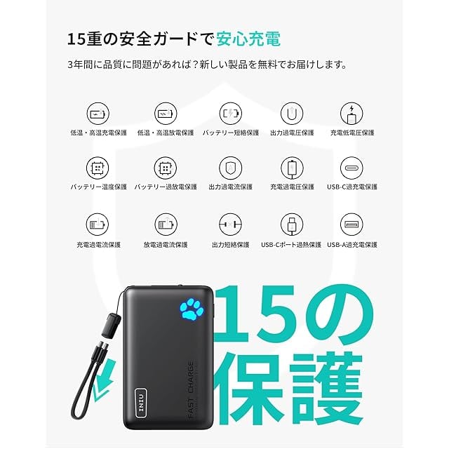 【INIU・安全な急速充電プロ】世界中で3,800万人以上にご愛用いただいている、安全性に配慮した充電体験をお届けします。INIUの充電製品は厳格な安全基準に従い、全製品に業界をリードする3年間の品質サービスを提供しています。