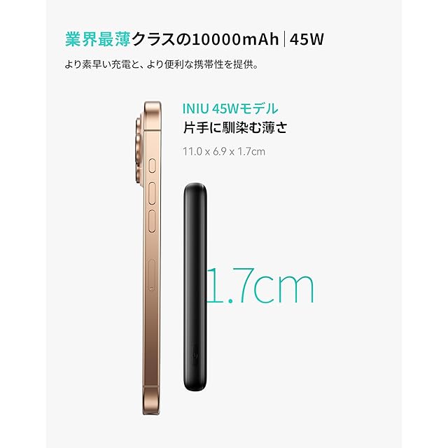 商品名:INIU P41 超軽量 モバイルバッテリー 小型 45W急速充電 USB-C USB-A 10000mAh 3台同時充電 PSE技術基準適合 大容量 安全設計&多種保護 携帯充電器 薄型 旅行/出張/停電対策/アウトドア/災害/緊急用の便利グッズ iPhone 16 / 15 & Android iPad その他各種対応 日本語取扱説明書付き【ブラック】