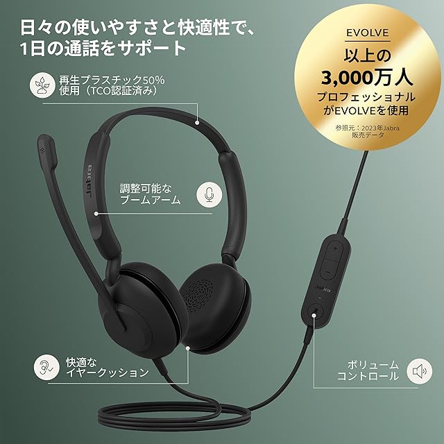 商品名:Jabra Evolve 10 USB-A Stereo 両耳ヘッドセット USB ヘッドホンマイク付き ステレオ ノイズキャンセリング 1日中快適なレザークッション 簡単接続 軽量 回転式マイクブーム 会議