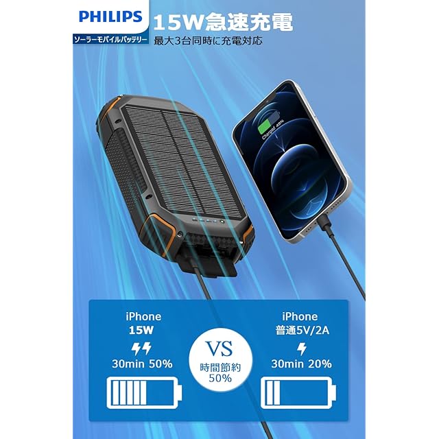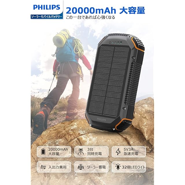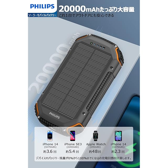 Philips 20000 mAh ソーラー充電器 ソーラーバイルバッテリー