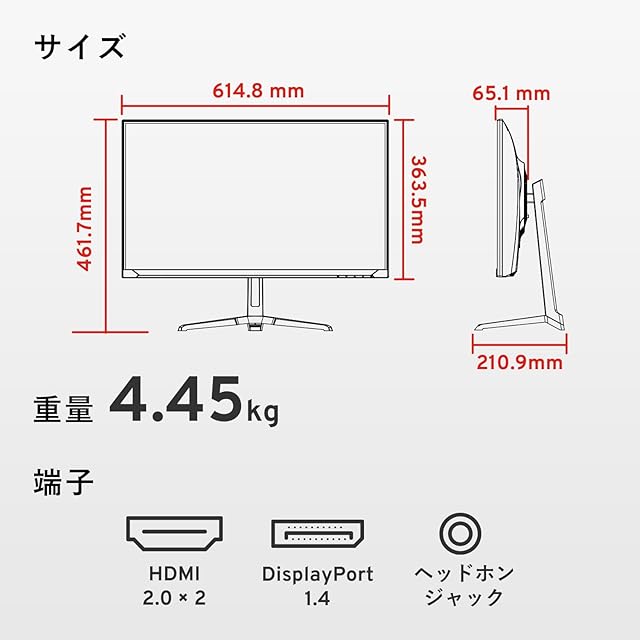 【端子】 HDMI 2.0 ×2 / DisplayPort 1.4 ×1 / ヘッドホンジャック