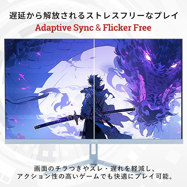 【機能】 AMD FreeSync Premium / G-SYNC compatible / HDR10 / Flicker Free / VESAマウント(75mm) / ブルーライトカット / Overdrive / Black Equalizer / スピーカー内蔵 (3W×2)