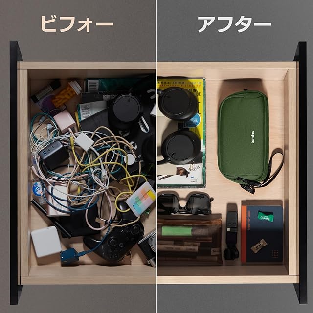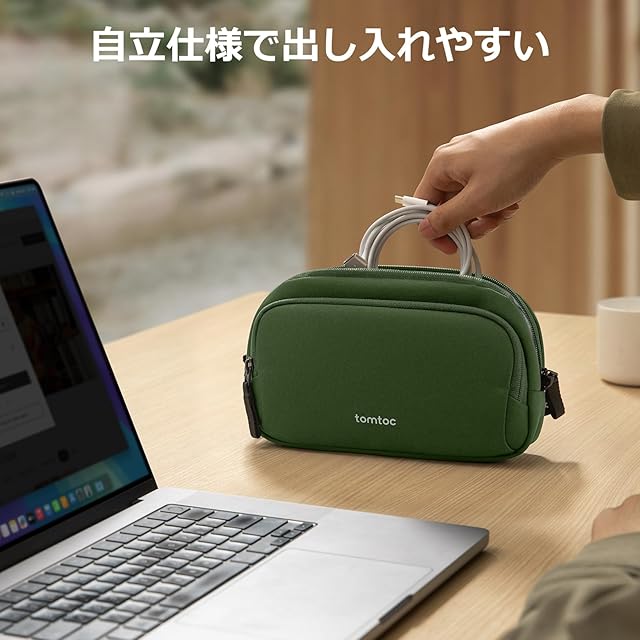 商品名:tomtoc ガジェットポーチ 大容量 トラベルポーチ PC周辺小物収納ポーチ 小物入れ バッグ ケース ケーブル アダプタ モバイルバッテリー マウス収納 出張 お出掛け オフィス 旅行 便利グッズ バックインバッグ 二層 自立 撥水 軽量 グリーン