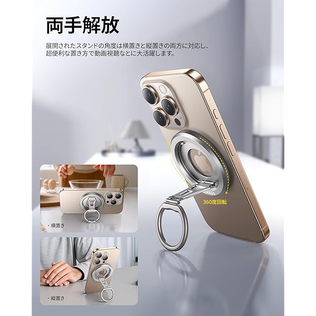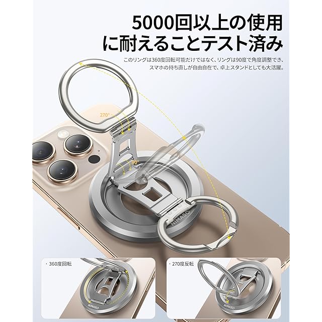 商品名:【2025新モデル】 NIMASO スマホリング MagSafe対応 マグセーフ リング マグネット式 スマホ落下防止 360度回転 角度調整可能 金属リング付き iPhone16/15シリーズ、Androidなど全機種対応 (シルバー)
