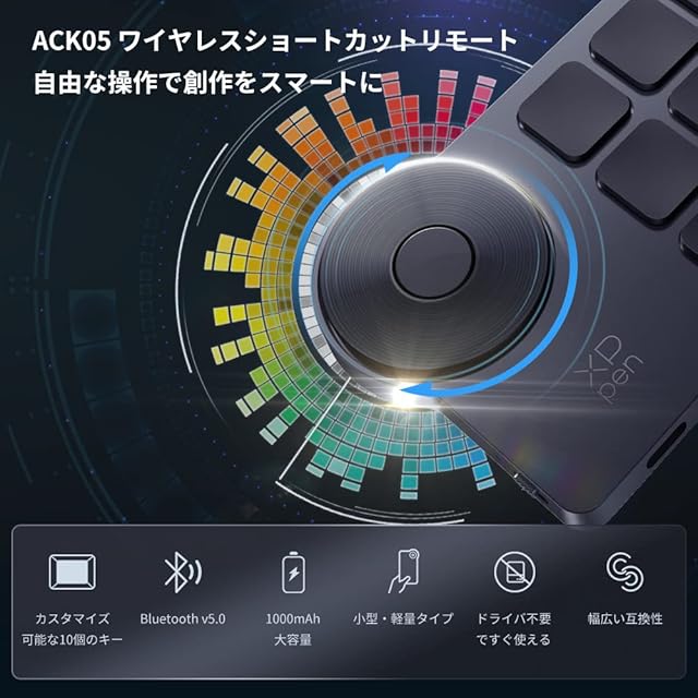 商品名:XPPen 左手デバイス ショートカットリモート 片手キーボード Bluetooth対応 ワイヤレス ペンタブ 液タブ用 ノートパソコン対応 作業効率向上 イラスト 画像 動画編集 ACK05