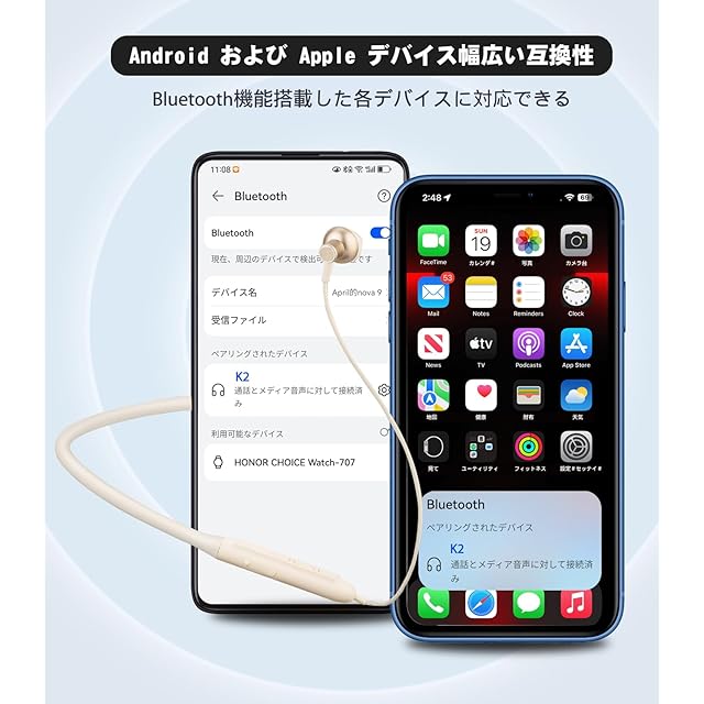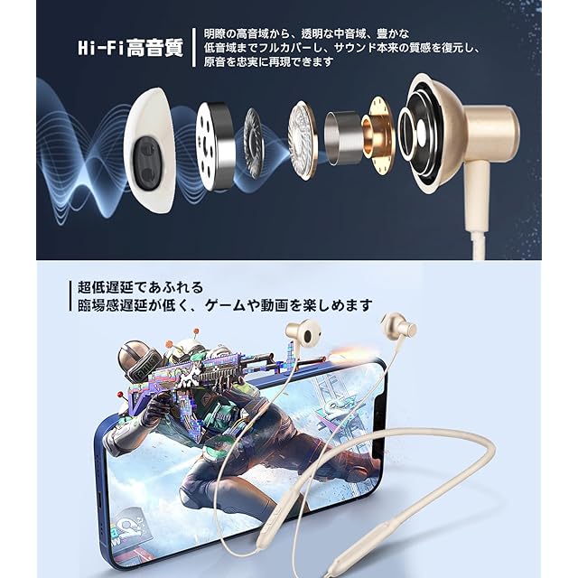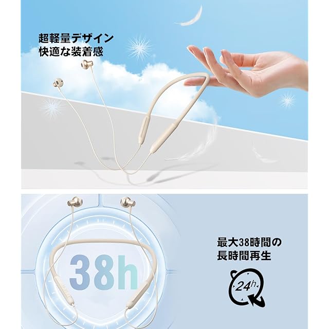 商品名:【2025革新】Bluetooth イヤホン ネックバンド型 HQP 首掛け ワイヤレスイヤホン Bluetooth 5.3 ブルートゥース CVC8.0ノイズキャンセリング Type-C急速充電 Hi-Fi音質 自動ペアリング ハンズフリー通話 IPX7防水 超軽量 技適認証済 iPhone/Android対応 (オフホワイト)