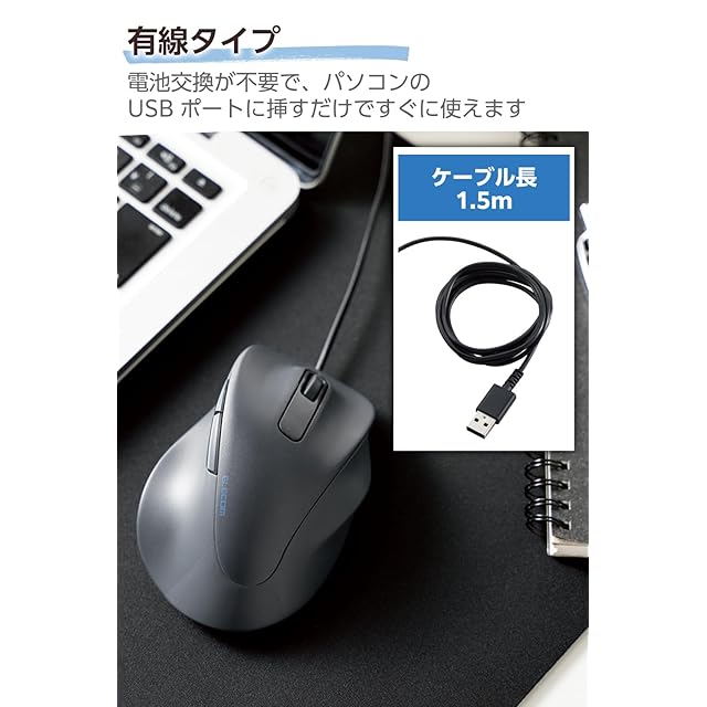 商品名:エレコム 有線マウス EX-G 静音 Mサイズ 5ボタン 「AskDoctors評価サービス」認証 抗菌 ブラック M-XGM30UBSKABK
