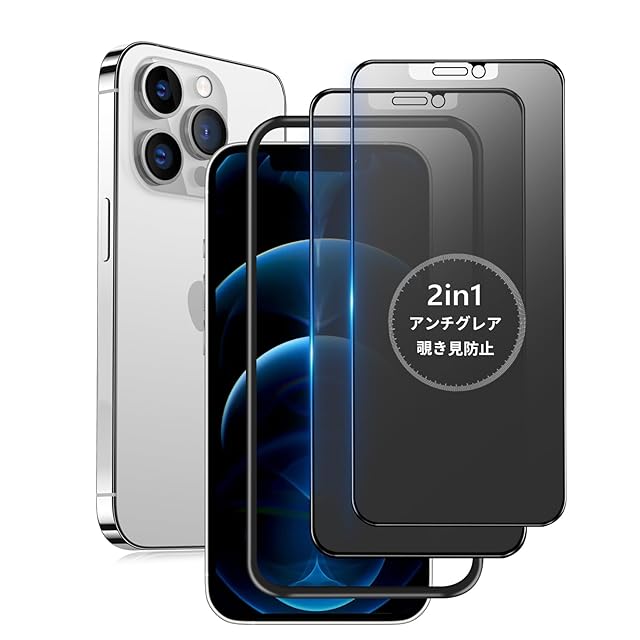 【2in1・多機能】 新技術を取り入れた2in1保護フィルムは、アンチグレア&覗き見防止機能を兼ね備えています。画面操作時の手触りをさらに改良し、より滑らかでサラサラな使い心地を実現しました。 【対応機種】 iPhone 12 Pro max 用(6.7インチ対応)。【パッケージ内容】 iPhone12 Pro max ガラスフィルム * 2枚セット + ガイド枠 * 1枚。