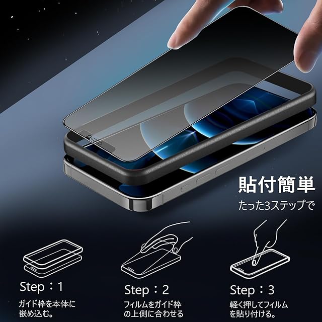 商品名:【覗き見防止 + アンチグレア / 2枚セット】 iPhone 12 Pro max ガラスフィルム 覗き見 さらさら いPhone12Promax 保護フィルム サラサラ アイフォン12プロマックス 覗き見防止フィルム 指紋防止 ガイド枠 付き