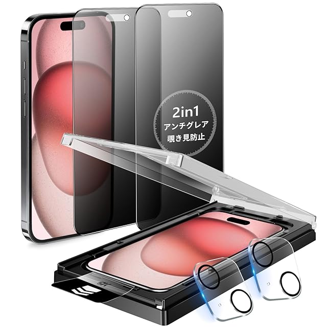 MINIKA iPhone 15 Plus ガラスフィルム 覗き見防止 + アンチグレア 2in1 いPhone15Plus フィルム のぞき見防止 さらさら アイフォン15プラス 保護フィルム プライバシー 横から見えない 指紋防止 一体式ガイド枠付き 超簡単貼り付け 自動位置決め iPhone15Plus カメラフィルム 付き「2枚セット」 | TREND DESIGN 家電専門店