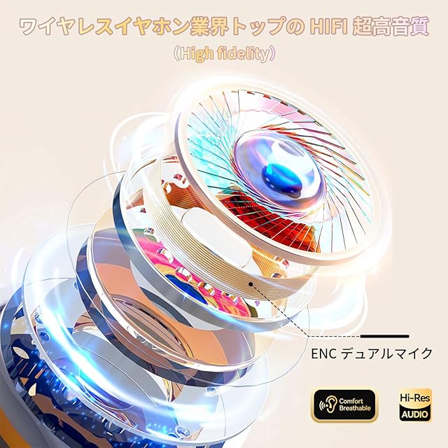 【最新Bluetooth 5.3&HiFi超高音質】最先端のBluetooth 5.3を搭載、接続が安定しやすくなり、15mの遠距離でも音樂再生中や電話中に音途切れがなし、より透き通った音声を楽しむことができます。ワイヤレスイヤホン業界トップのHiFi高音質(High fidelity)、低域にはパンチがあり、ずっしりと厚みがありながらも、他の帯域がつぶれません。中域も輪郭がはっきりとしており、低域とバランスを取りながら聴きごたえのあるサウンド。高音域がかなりしっかりと出ており、元気で刺激的なサウンドを楽しむことが出来ます。さらに、普通のノイズキャンセリング技術を革新、小さい音がしっかりと聞こえうるほどに周囲の音をシャットアウトしてくれつつも、強いノイズキャンセル特有の圧迫感を全く感じさせません、自然に周りの音を減衰してくれ、没入感が高められ、上質でキレイな音声を堪能することができます!
