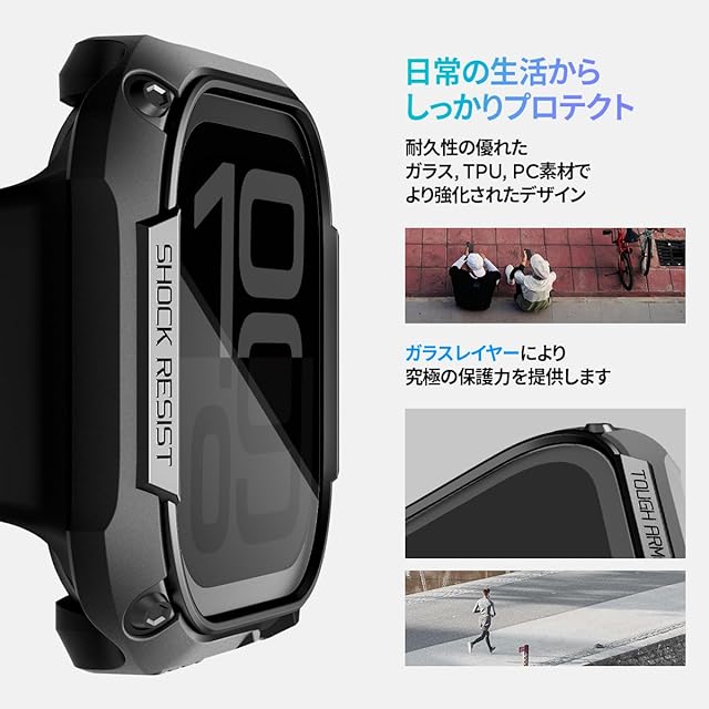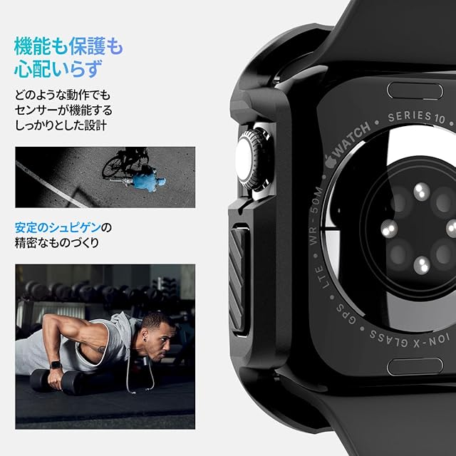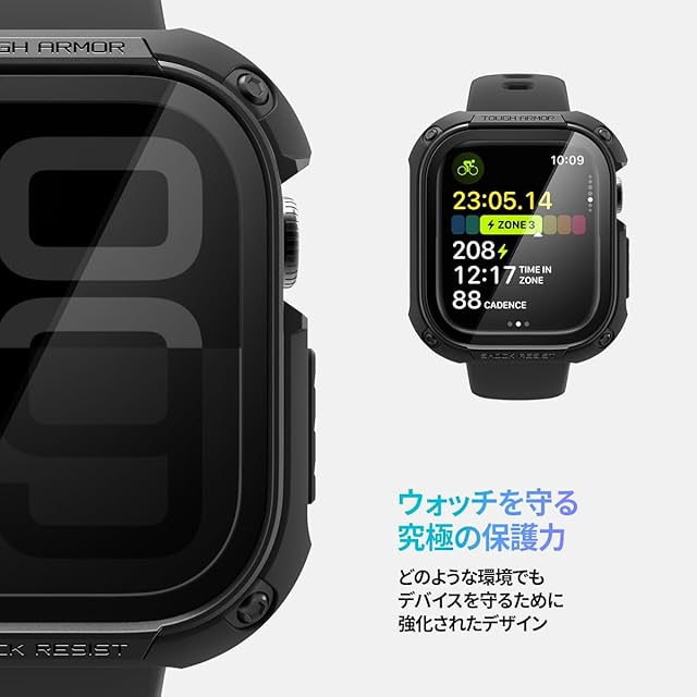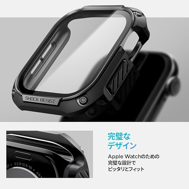 商品名:Spigen Apple Watch 10 ケース 46mm AppleWatch10 対応 ガラス 一体型 米軍MIL規格取得 画面保護 耐衝撃 落下 衝撃 吸収 すり傷 防止 保護カバー タフ・アーマー ACS08603 (ブラック)