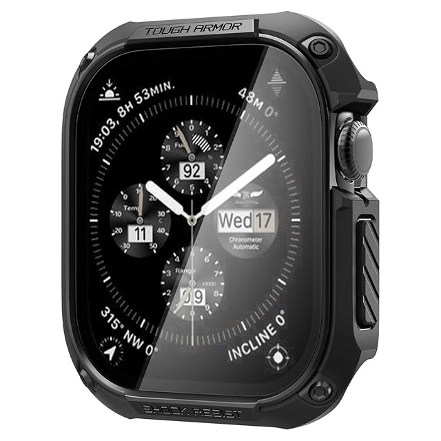 Spigen Apple Watch 10 ケース 46mm AppleWatch10 対応 ガラス 一体型 米軍MIL規格取得 画面保護 耐衝撃 落下 衝撃 吸収 すり傷 防止 保護カバー タフ・アーマー ACS08603 (ブラック) | TREND DESIGN 家電専門店