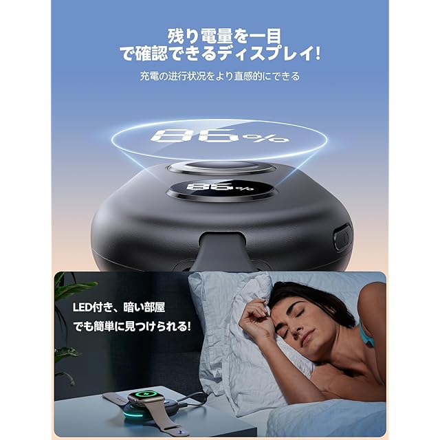 【バッテリー残量可視化!LED付き、暗い部屋でも簡単に見つけられる!】一般的な他の製品とは異なり、JOYROOM 先進的な Apple Watch 充電器は、具体的な数字で残りのバッテリー量をより直感的に表示します。 Apple Watchの充電進行状況をより明確に把握できます。LEDインジケータ付き、暗い部屋でも簡単にアップルウォッチ 充電器を見つけられるようにします!