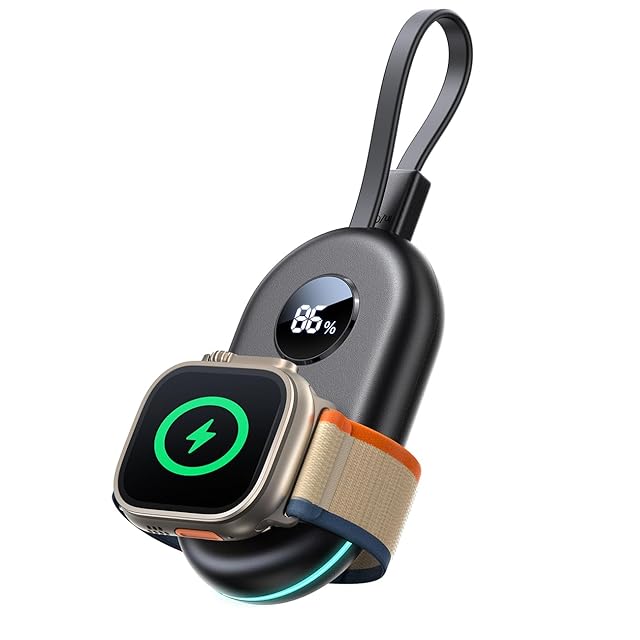業界初!USB C内蔵!バッテリー残量可視化 JOYROOM の最新設計による Apple Watch 用充電器は、業界初の USB-C 内蔵モデルです。この充電器は、2500mAh の大容量バッテリーを内蔵しており、Apple Watch を 3〜4 回、または Apple Watch Ultra を 1.5〜2 回フル充電できます。内蔵の USB-C ケーブルにより、充電の手間を最小限に抑え、スムーズに充電が可能です。 特長としては、LED インジケータがバッテリー残量を可視化し、充電の進行状況を一目で確認できます。また、2in1 デザインで、充電ケーブルとバッテリーが一体化しており、アウトドアや旅行に最適なコンパクトなサイズを実現。持ち運びにも便利で、キーリングに取り付けて簡単に持ち運べます。 この充電器は、Apple Watch の全シリーズ(Series 10/9/8/7/6/5/4/3/2 & SE & Ultra、Ultra2、SE、Nike、Hermès)に対応しており、磁気急速充電機能も備えています。どこでも快適に充電できるこの製品は、アウトドアや旅行時の必需品です。