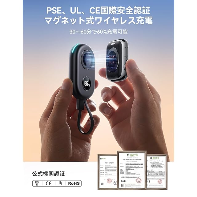 【2500mAh内蔵バッテリー!ストレスフリーな旅へ!】JOYROOM 上品な アップルウォッチ 充電器は、2500mAh の大容量を持ち、Apple Watch を 3〜4 回、または Apple Watch Ultra を 1.5〜2 回充電できます。Apple Watch モバイルバッテリーは 2 時間以内でフル充電可能です。アップルウォッチ のバッテリー残量を気にすることなく、ストレスフリーな旅を体験しましょう!