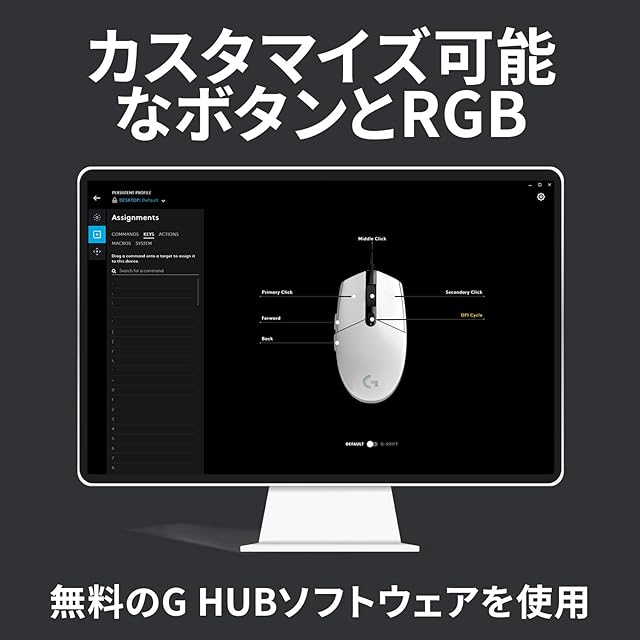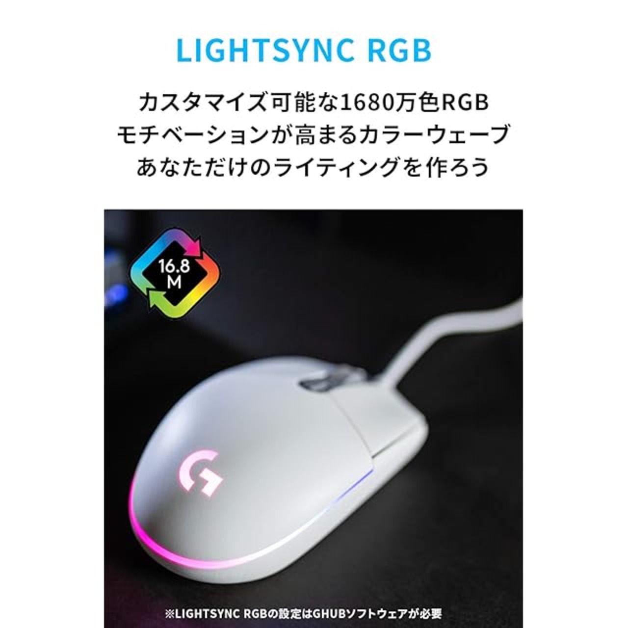 【1680万色RGB】LIGHTSYNCテクノロジーとG HUBにより、RGBライトを約1,680万色から選んでカスタマイズ。セットアップをパーソナライズしたり、他のGギアと同期も可能