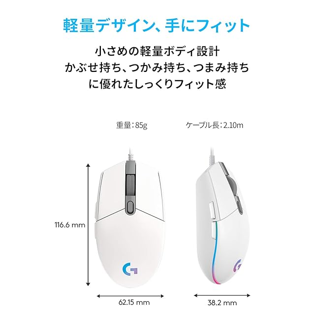 商品名:Logicool G ゲーミングマウス G203 有線 ゲーミング マウス USB 接続 G203-WH 軽量 85g LIGHTSYNC RGB 6個プログラムボタン ホワイト PC windows mac 国内正規品 【 ファイナルファンタジー XIV 推奨モデル 】