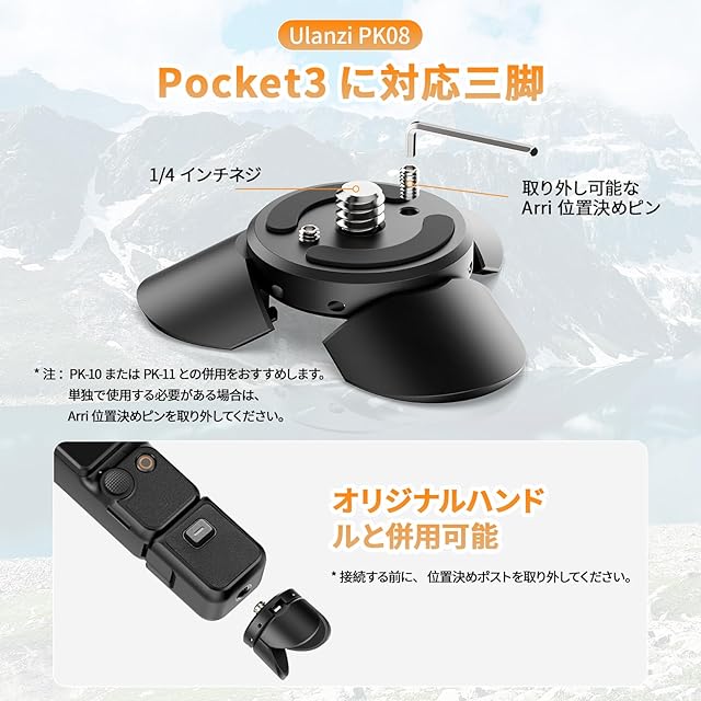 商品名:Ulanzi Pocket3用ミニ三脚 卓上 スタンド 折りたたみ 小型 軽量 ハンドグリップ 持ち運び便利 コンパクトOsmoPocket3用アクセサリー PK08