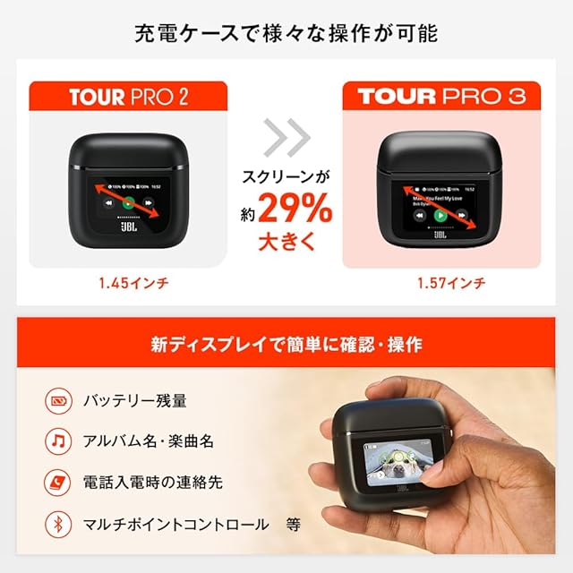 JBL TOUR PRO 3 ワイヤレスイヤホン bluetooth/ハイブリッドノイズキャンセリング/ハイレゾワイヤレスLDAC/デュアルドライバー/マルチポイント/防塵・防水/ワイヤレス充電対応/スマートタッチディスプレイ搭載/ラテ / JBLTOURPRO3LTT | TREND DESIGN 家電専門店