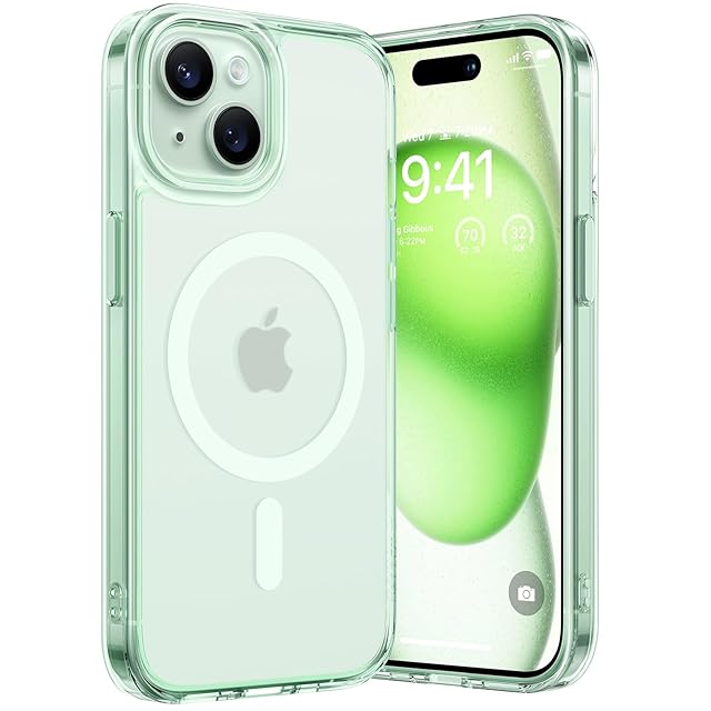 【米軍規格・Magsafe対応】TORRAS iPhone 15 用 ケース 耐衝撃 マグネット搭載 ワイヤレス対応 半透明 マット 黄ばみなし ストラップホール付き アイフォン 15 用 カバー Guardian-Mag 薄緑い