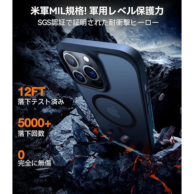 【米国MIL規格取得・超強耐衝撃性!】いくら気をつけていても落とす時がある!でも大丈夫!ケースが米国防総省制定米軍MIL規格に完勝(認証番号:No.GZIN2005022739PS)、2Mの高さから26回以上落としても本体は綺麗に無傷!また、TORRA特許の3代目「X-SHOCK」と背面「カメラエアバッグ」された耐衝撃技術も備えています。高い耐衝撃性を誇り、iPhone13proを全方位からしっかりと守ります。