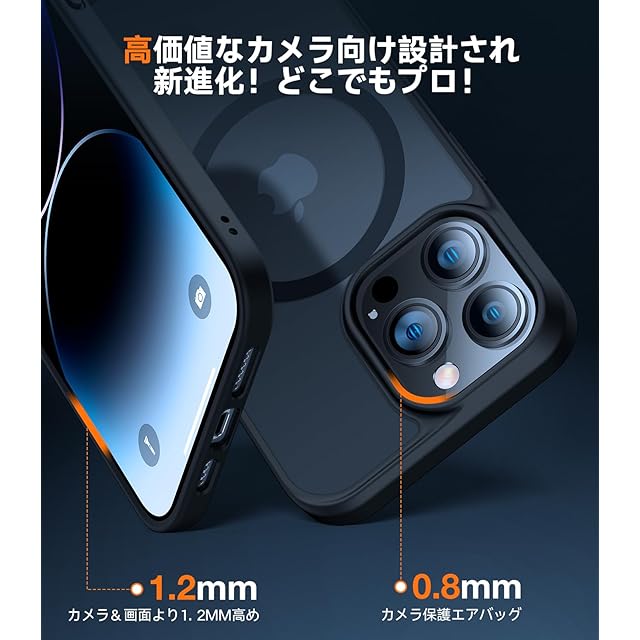 商品名:【米軍規格・MagSafe対応】TORRAS iPhone 13 Pro 用 ケース 半透明 マグネット搭載 耐衝撃 マット感 黄ばみなし ストラップホール付き マグセーフ対応 ワイアレス充電対応 マットブラック Guardian-Mag