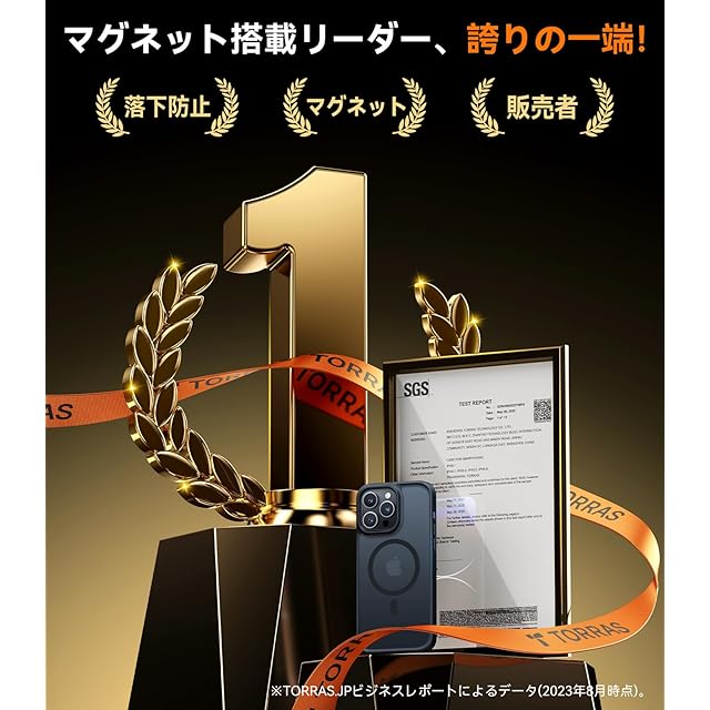 【米軍規格・MagSafe対応】TORRAS iPhone 15 Pro Max 用 ケースマグネット搭載 米軍耐衝撃 半透明 指紋防止 ワイアレス充電 ストラップホール付き アイフォン15ProMax 用 カバー Guardian-Mag ブラック | TREND DESIGN 家電専門店