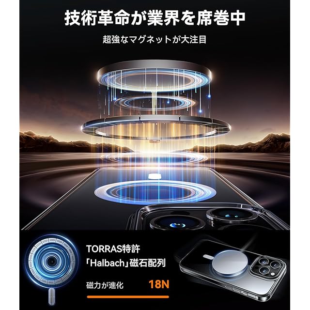 商品名:【極限耐黄変!Magsafe対応】TORRAS iPhone 15 pro max 用 ケース クリア マグネット搭載 黄ばみなし 指紋防止 ワイヤレス充電 耐衝撃 全面保護 透明