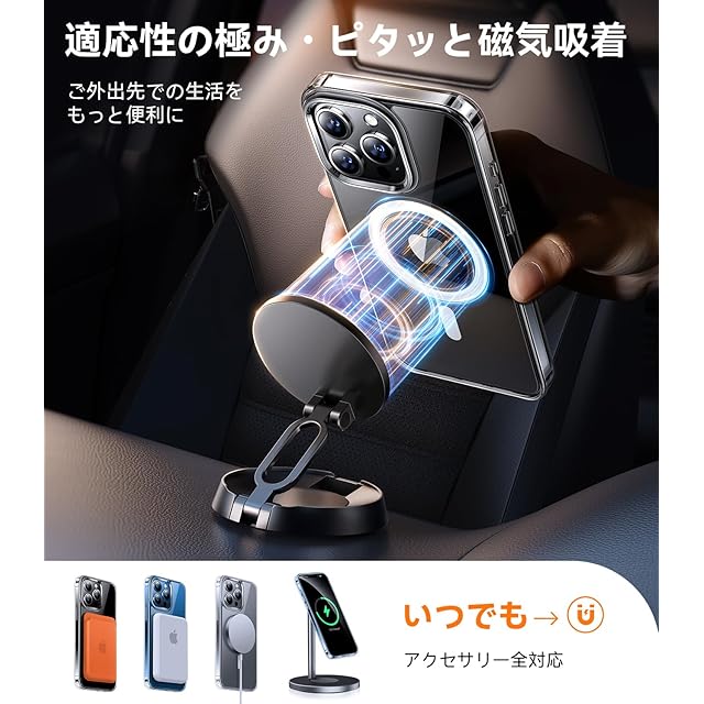 【超強力マグネット配列・業界に革命を】強力なハルバッハ磁石配列を搭載、磁力の魔法を体験しよう!吸引力が急上昇することで、瞬時にピタッと吸い付く安定感、何回振っても落ちない!ワイヤレス充電だけでなく、さまざまなアクセサリーにも対応できます。
